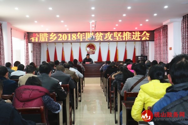 1月18日 上午 ,者腊乡召开2018年脱贫攻坚推进会,乡党政班子成员、乡机关全体干部职工、各中心(站所)负责人、各村书记、主任、驻村工作队队员参会,会议由乡党委书记王跃昆主持。