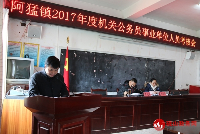按照县委组织部、县人社局对2017年度公务员考核的工作部署,1月11日,阿猛镇组织召开了2017年度机关公务员事业单位人员考核会。会议由镇纪委书记王元涛同志主持,党委副书记及镇机关事业单位全体干部职工参加。