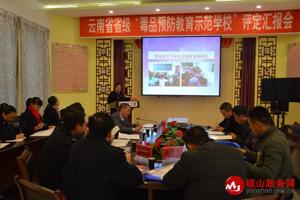 检查验收工作分两步进行,检查验收组专家首先巡视校园,查看毒品预防文化长廊和功能室建设情况,然后召开工作汇报会,对学校创建云南省省级“毒品预防教育示范学校”总体情况进行反馈。