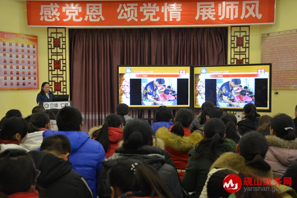 “学榜样”环节,龙老师选取本校被评为砚山县师德模范的卢跃美老师的先进事迹视频短片,让老师们观看。卢老师对教育事业的执着与热爱,对学生的深情与奉献,深深地感动了在场的每一个人。