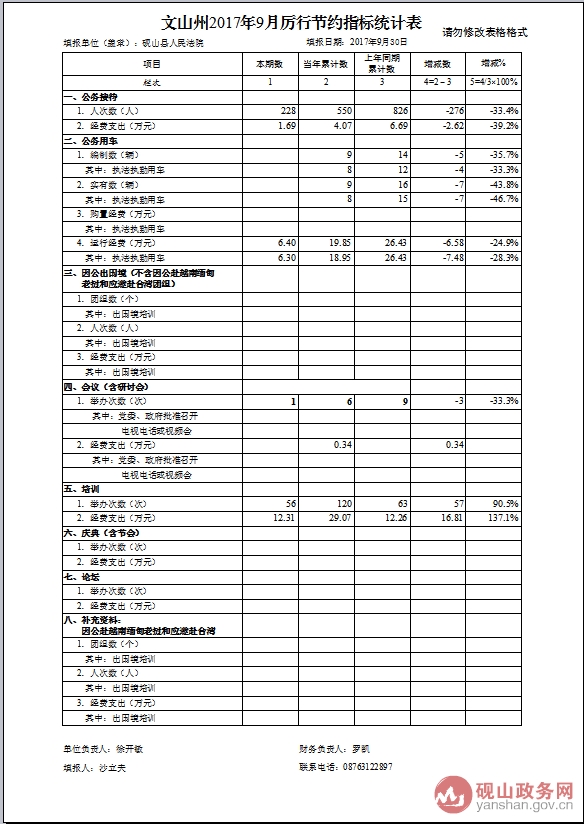 砚山县人民法院2017年第三季度厉行节约指标统计表
